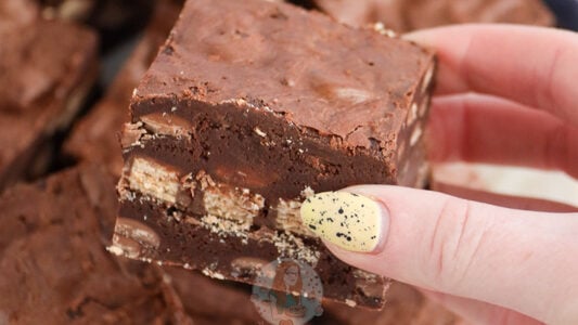 Deliciously fudgey chocolate chip KitKat brownies with a gooey chocolate chip brownie base, stuffed to the brim with KitKats!  So here we are, back again with yet another brownie recipe that I hope you are all going to obsess over just as much as I have been… because look at them! HEAVENLY!  These deliciously chocolatey…
