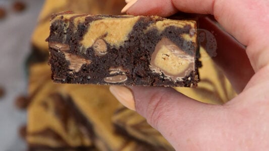 Super chocolatey peanut butter brownies with a peanut butter swirl, chocolate chips and peanut butter cups! So it’s time for an incredibly highly requested recipe of PEANUT BUTTER BROWNIES! Honestly, I know I know… it’s been too long until I have brought this beauty to you all. But here you go… Enjoy.  Peanut Butter Bakes…