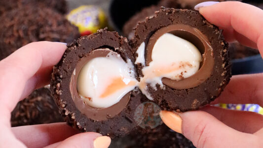 Delicious showstopping Creme Egg scotch eggs with a Creme Egg wrapped in homemade chocolate brownie and sprinkles!  So these are one of the classic viral treats of the easter baking season, and I am equally as obsessed and intrigued. Yes, they are quite over the top really, but they are just GLORIOUS!  Homemade or shop…