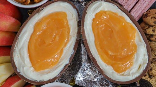 A delicious ‘Creme Egg’ cheesecake dip with a vanilla cheesecake egg white, an orange curd yolk, in an Easter egg! Perfect sharing dessert.  So I couldn’t resist creating a delicious easter themed recipe that is based around the all-mighty Creme Egg… this is essential a giant creme egg looking dip that is perfect for the…