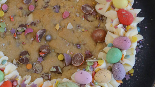 A delicious and easy to make giant easter cookie stuffed with easter chocolates, and decorated with buttercream and even more chocolate!  We all know I love an easter bake that I can basically stuff with as many easter chocolates as I want, and this is definitely another one of those recipes. I adore cookies, in…