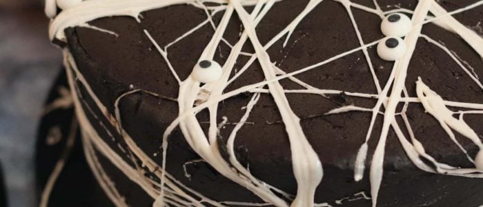 Spooky spider web cake with a red velvet sponge, white buttercream frosting, black chocolate buttercream frosting, and a marshmallow web… deliciously spooky.   Spooky spider web cake It’s the season to be spooky, so I thought I’d go all out. Here, is my spooky spider web cake. Yeah, that’s right… it’s spookilicious. Red velvet cake,…