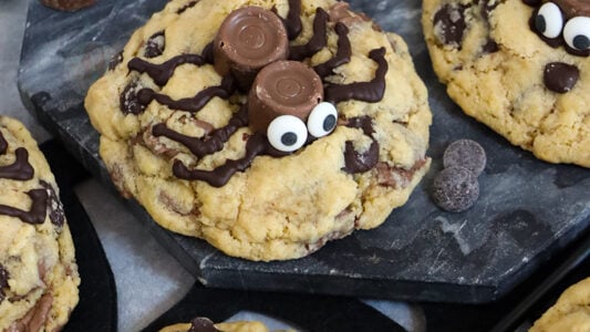 Deliciously spooky spider NYC Cookies with milk and dark chocolate chips, and Rolo chocolate spiders!  Can we appreciate these for a second? They’re not spooky or scary at all… they are in fact just utterly delicious cookies that I am totally in love with.  These cookies are giant, chunky, chocolatey and SPOOKALICIOUS! Yes that’s right,…