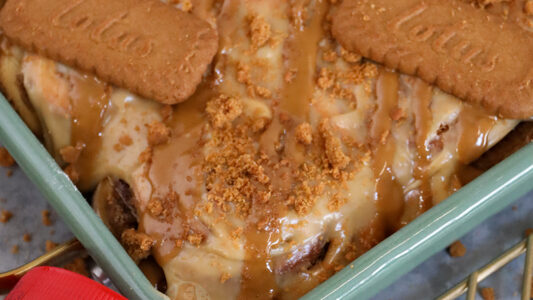 Delicious biscoff rolls with a biscoff cinnamon sugar centre, a cream cheese biscoff glaze and more! So when I say you are going to LOVE this recipe, I am not joking… it’s the marriage of all things I LOVE with my cinnamon rolls and biscoff combined – the best of the best. Biscoff  I love…